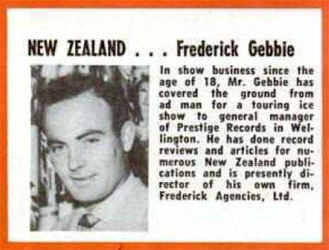Billboard introduces its New Zealand correspondent, Fred Gebbie, 3 August 1963