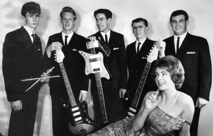 The Playboys (L-R): Graeme Miller, Mark Graham, Brian Ringrose, Dave Martin, Phil Garland, and Diane Jacobs (Dinah Lee)