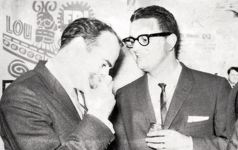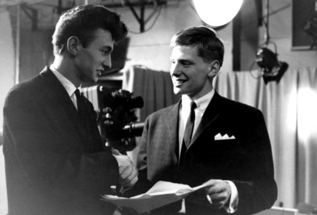 Ray Woolf and In the Groove host Colin Broadley, 1963. Broadley would soon become well-known as the lead actor in the film Runaway; he was also an early Radio Hauraki host. - Grant Gillanders Collection