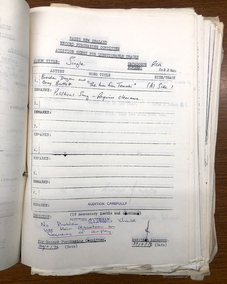 Banned from radio: a sample from the ledger. - RNZ/Samuel Rillstone