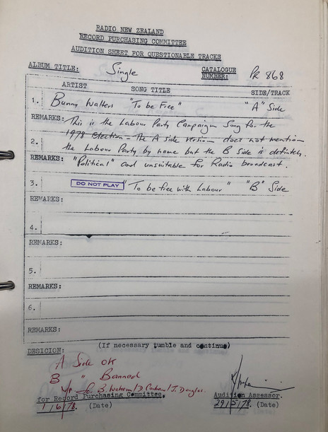 Banned from radio: Bunny Walters. - Ngā Taonga Sound and Vision