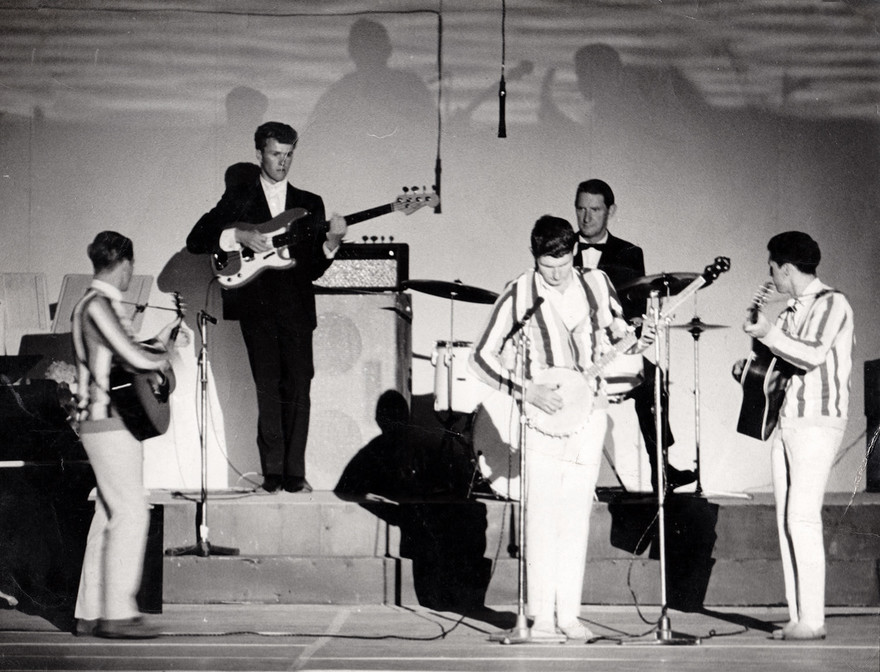 White tie: Bruce Lynch, playing bass at the Bowl of Brooklands, New Plymouth, 1966. - Bruce Lynch Collection