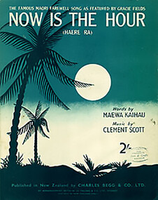 The major song in the early family of ‘Now is the Hour’ is ‘Haere Rā’, which possibly introduced the first English words. This allowed the song to be used at Pākehā farewells, as the earlier Māori text had facilitated its use at Māori gatherings. Poroporoaki (farewells) had been the occasion for the earlier songs and now the words of farewell were moved to prominence in the first line, “This is the hour for us to say goodbye.”