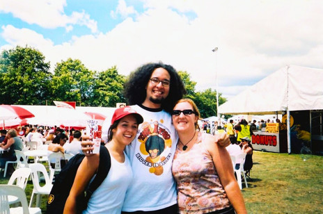 Festival-goers Parachute Festival with musician Chris Lamsam (middle) c.1997-98, a few years before he co-founded children's musical supergroup The Funky Monkeys. - Alice Casserly
