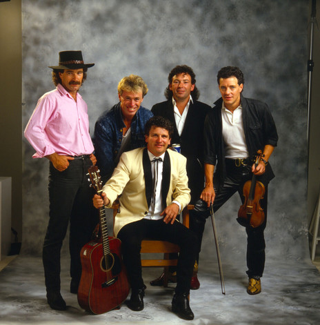 The original Warratahs line-up, which recorded the early singles and the debut album The Only Game in Town in late 1987. From left: John Donoghue, Wayne Mason, Barry Saunders (seated), Marty Jorgenson, Nik Brown. - Trevor Reekie Collection