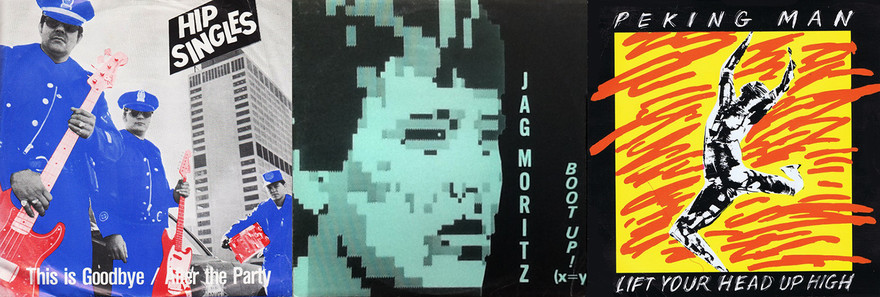 Hit Singles releases: Hip Singles - This Is Goodbye 7" (1982); Jag Moritz (aka Ian Morris) - Boot Up 12" (Let X = Y) (1984); Peking Man - Lift Your Head Up High 7" (1985)