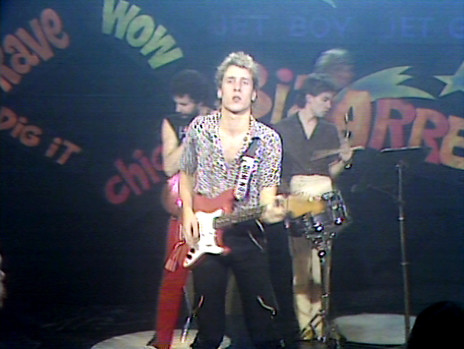 Simon Darke fronts Bon Marche on TV show Ready to Roll, 1979. The band is performing the Elton Motello song Jet Boy, Jet Girl