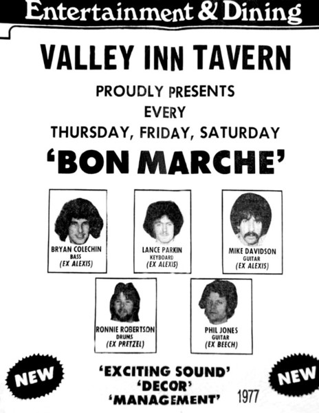 Bon Marche - advertisement for a season at the Valley Inn Tavern, Heathcote Inn, October 1977