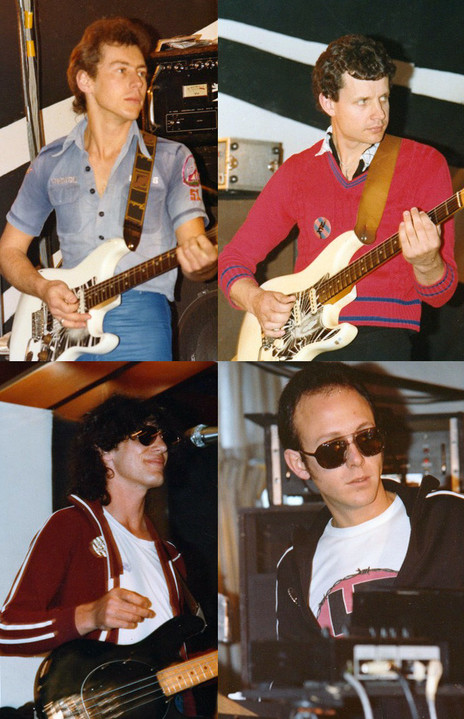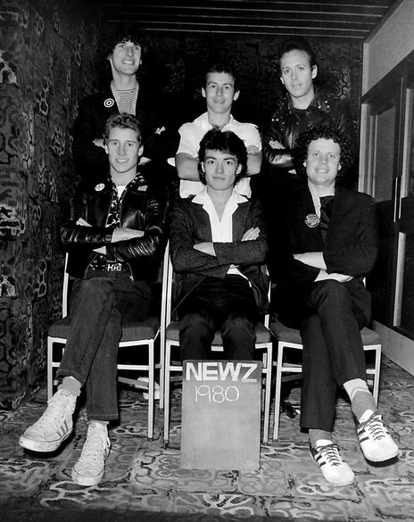 The Newz, March 1980: Brad Coates (keyboards), Simon Darke (vocals), Bryan Colechin (bass), Allan Cattermole (drums), Tony Rabbett (guitar), Phil Jones (guitar)