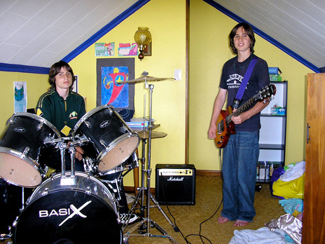 Zac and Josh Nicholls' first band Goodbye Blue Monday playing their first gig at the Otago Boys High School Battle of the Bands c.2009