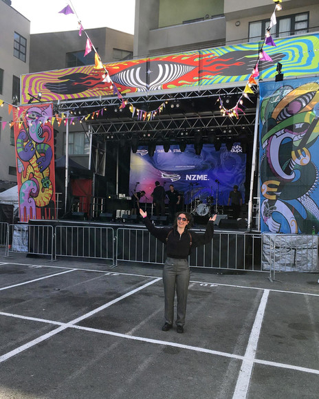 Hilary Faul showing the stage at Cuba Dupa festival in Wellington, 2023.