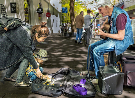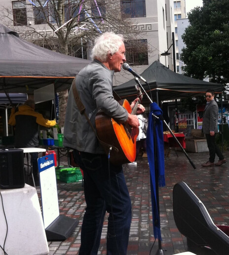Mark Laurent busking at City Centre Market, Freyberg Square, Auckland