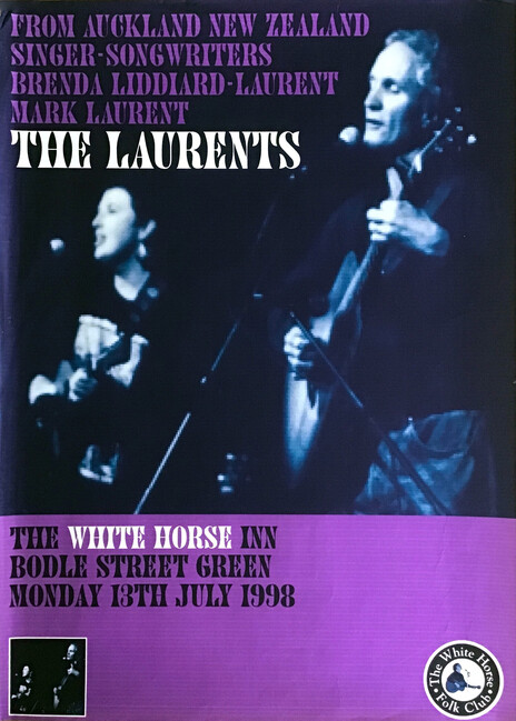 Gig poster for The Laurents (Mark Laurent and Brenda Liddiard-Laurent) - White Horse Inn, Sussex, 13 July 1998
