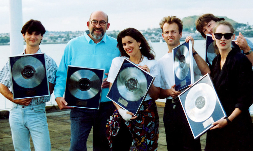 Festival Records staff with Toni Childs, 1989. From left: Kim Sokolich, managing director Jerry Wise, Adam Holt, John Gough, and Sandi Riches - Adam Holt Collection