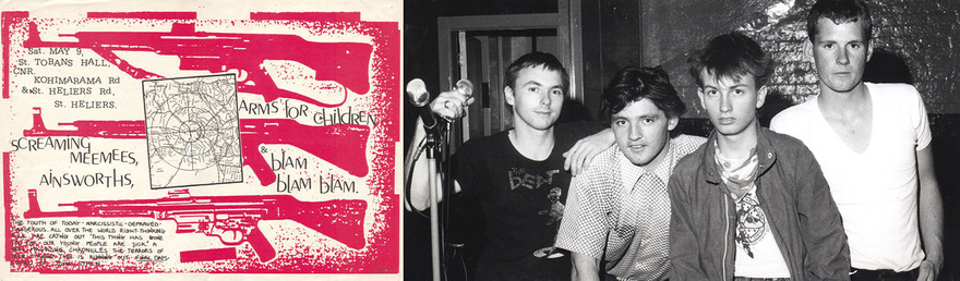 I first met Adam at two events. The first was at the long-demolished XS Café on Airedale Street, a venue that served as the inner-city nerve centre for an influx of bands from the schools and halls of Auckland’s North Shore. I had fallen in love with a quartet who were part of that scene, partly due to the enthusiasm of their engaging manager, Hilary Hunt. I had seen The Screaming Meemees several times before, but Hils was keen to get as many bands as possible from the scene onto an album of new bands I was putting together, soon to be titled Class of 81. With that in mind, he invited me to a showcase at XS, headlined by the Meemees. When I arrived, Hils called me over and asked me to handle his band’s sound as he was going to be on stage. I protested that I had never done sound before, but agreed when I saw that the “desk” only had half a dozen sliders. The band was The Ainsworths, and afterwards, the guitarist from the band – a young fella with a big blond quiff – told me I had done well. That was Adam.