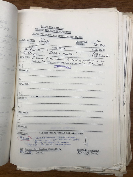 Banned from radio: a sample from the ledger. - RNZ/Samuel Rillstone