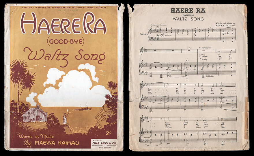 ‘Haere Rā (Goodbye) Waltz Song’ (1920, by Maewa Kaihau; in sheet music published 1928 or earlier, the 1st and 3rd verses are in English, 2nd and 4th verses in Māori)