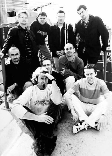 The Stylee Crew (later known as 37 Degrees). Clockwise from top left: DLT, Roger Perry, Stinky Jim, Dubhead, Slowdeck. - Photo by Darryl Ward. Dubhead collection