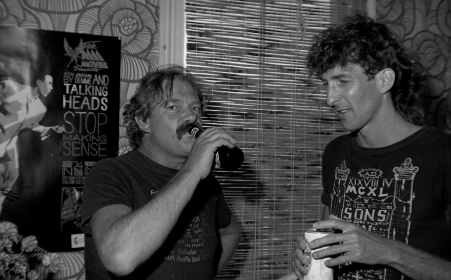 Barry Jenkin and Hit Singles label owner Jon Doe in 1986. Jon is wearing a Sons In Jepoardy t-shirt. - Photo by Bryan Staff
