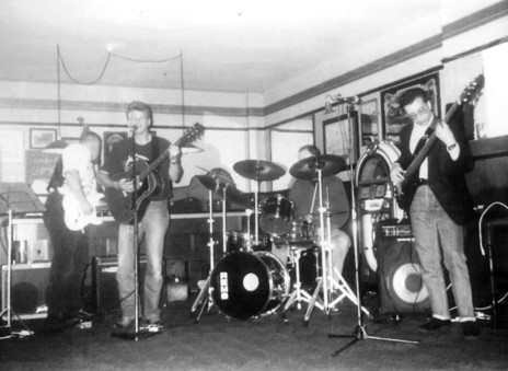 The Norman Brothers – soon to be known as The Slides – at Lord Nelson Tavern, Wellington, 1992. Left to right: Dougal Speir, Dave "Murph" Murphy, Jim Lawrie, George Limbidis.