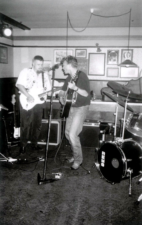 Dougal Speir and Dave "Murph" Murphy as The Norman Brothers – soon to be known as The Slides – at Lord Nelson Tavern, Wellington, 1992.