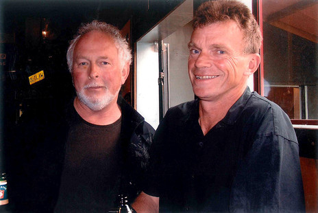 Jack “Bones” Lloyd-Jones with Dougal Speir (right), photographed at the Clyde Quay Pub, Wellington, c 1980.