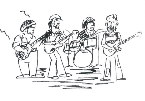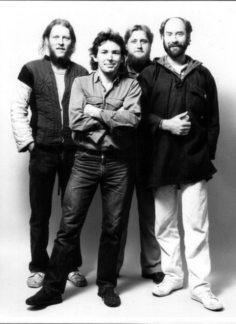 The second lineup of The Mangaweka Viaduct Blues Band, circa 1979-1980. From left: Dougal Speir, Richard Barta, Steve Garden, Bones.
