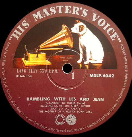 Les Wilson and Jean Calder - side one label for Rambling (His Master's Voice, 1958)